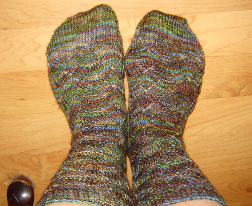- Look horrible while being knit – all knobbly and bumpy. Once on the foot, though, they stretch out nicely.