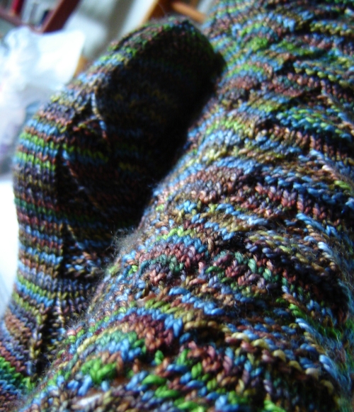 These were knit in Fleece Artist merino sock, colourway “woodland”. Pattern (“Monkey“) by Cookie A found in Knitty (winter 2006).