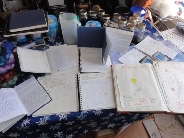 This got me thinking about this book hoarding (let’s call it what it is) of mine and how long it has gone on, so I delved into the basement, poked in the back of studio closets and found a few old friends. The picture above is of just a few of my journals, sketchbooks and notebooks over the years. There are many, many more. Most seem to have survived, as I found some that dated by to elementary and junior high school as well as a few from university days and onwards.