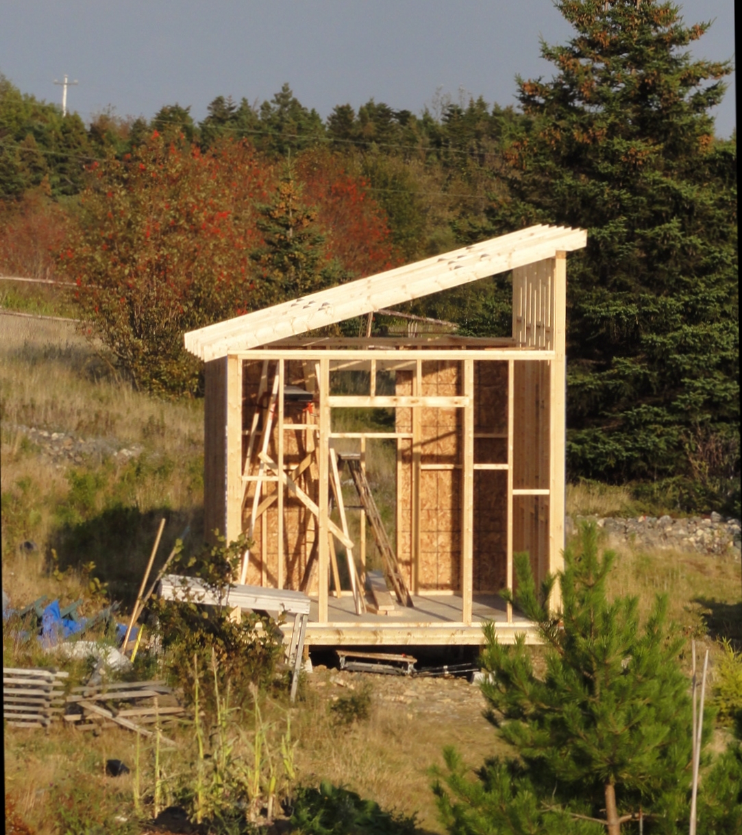 Life is proceeding pretty much apace here. Thanks to some help from Mom & Dad over the Thanksgiving Weekend, the shed now has rafters and some sheathing: