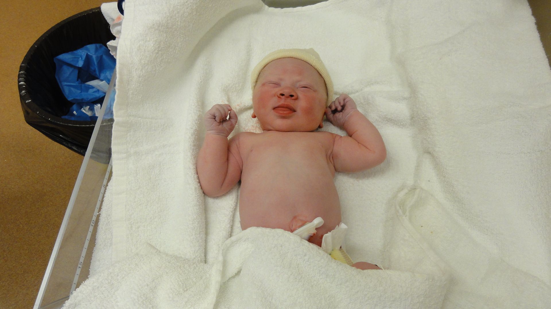 At 2:06am, Pacific Time (that’s 6:36 in Newfoundland), a wee manling made his way into the world. Please welcome new arrival Connor* Jacob Bragg: