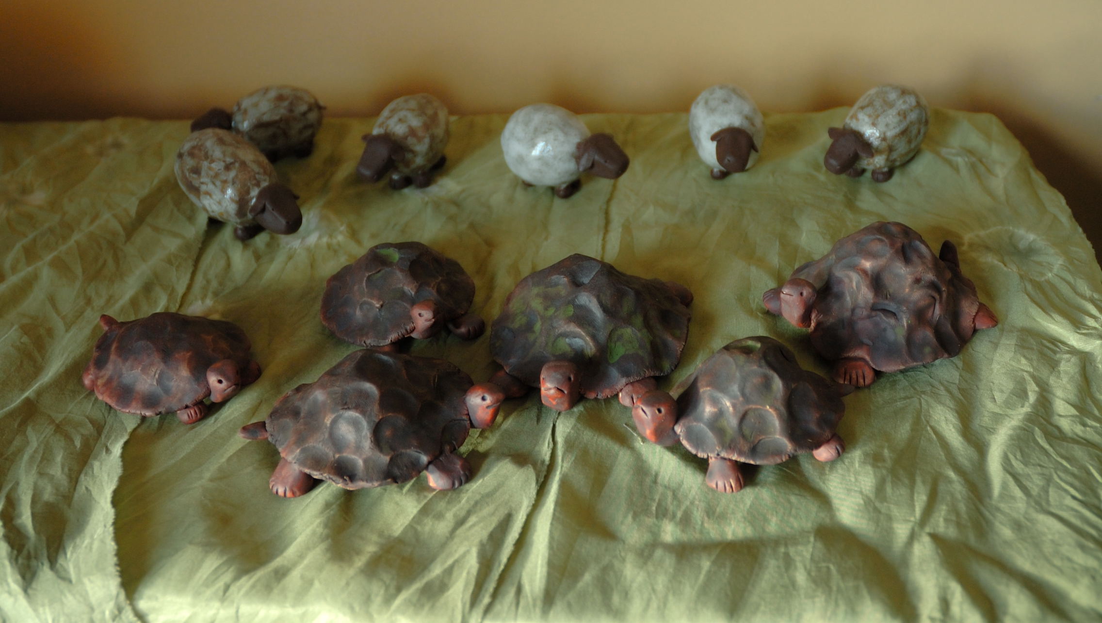 Then Christmas came and with it arrived the turtles. Also made by Maaike Charron, six turtles crept into my presents and hid themselves throughout my gifts. I’d unwrap a pair of running shorts and inside them was…. a turtle. Opened a bowl from Kingspoint Pottery and found…. a turtle. And so it went. Six in total, which proved to be a good thing. The sheep would meet their match (or so I hoped).