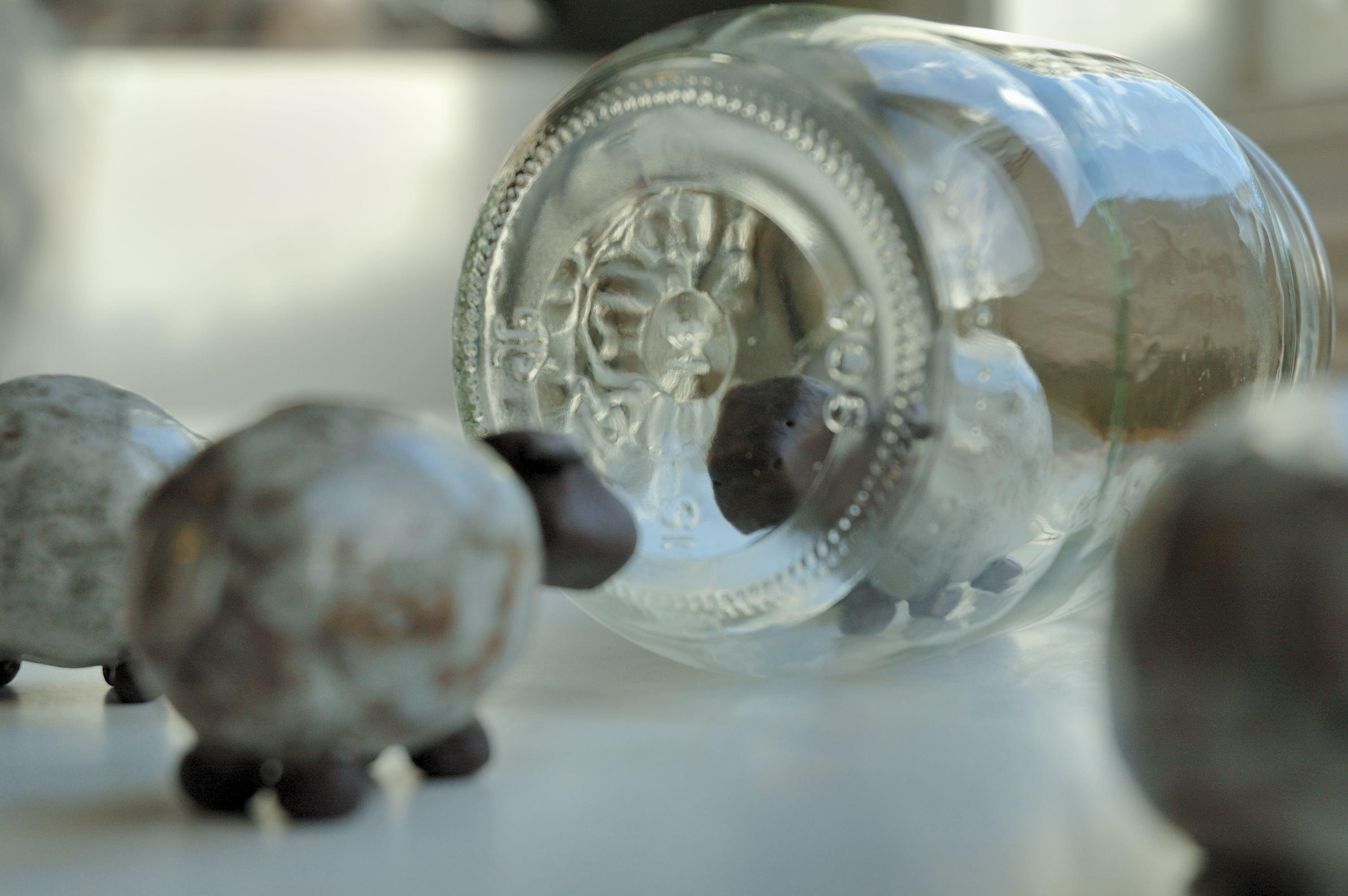 They are also quite curious and charismatic sheep and they have wormed their way rather thoroughly into the collective consciousness of our household. On a daily basis, the sheep are rearranged or posed with a prop or moved or in some other way manipulated by one person (although I suspect the cat in some instances) such that the rest of us have a good chuckle and then retaliate.