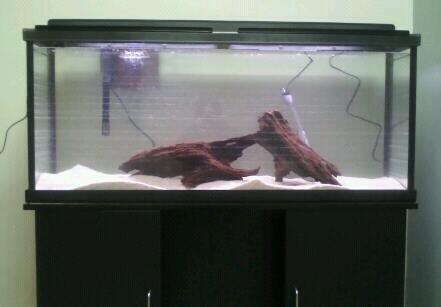 The tank is 55 gallons and about four feet long. While I would have loved to have done a saltwater setup, the energy and attention needed were beyond my scope and I wasn’t keen on shelling out the extra initial funds at that time, either. So we settled on a soft-water tank and my intention was to go with South American fish, for the most part. We ran the tank for a week or so, fishless, and then added five White Cloud Mountain minnows. After that, we added one or two fish every five days or so.