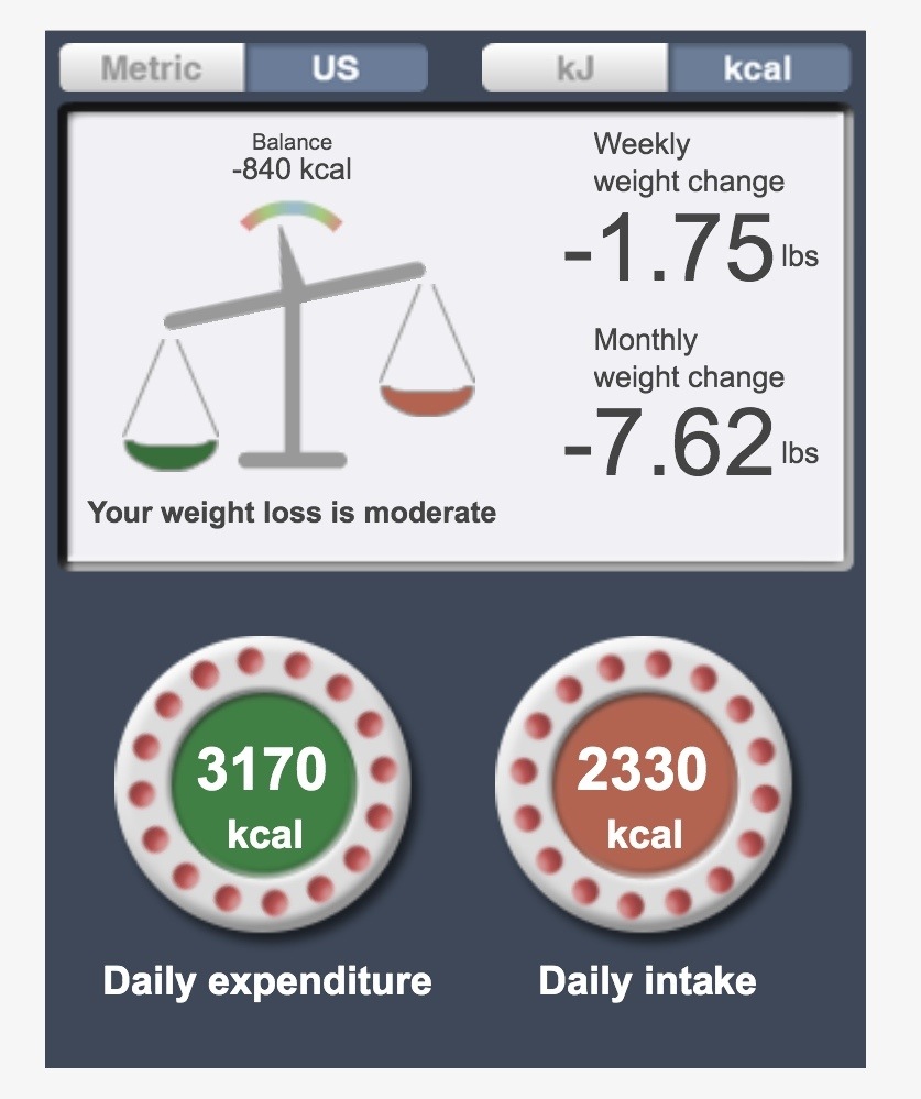 Here’s what it takes me to move through the world at my current weight and fitness level, with my present activity schedule: