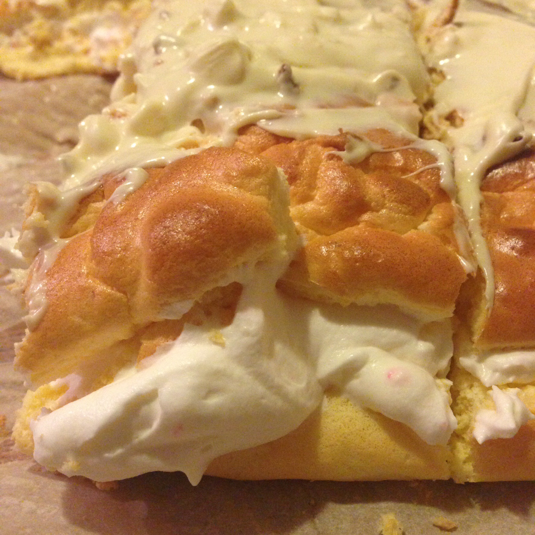 When cake is mostly cool, carefully separate layers. Spread filling over bottom layer. Replace top layer gently.