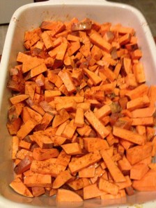 - …..chopping and roasting sweet potatoes. (400F, tossed in olive oil and chili powder)