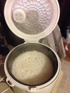 - I put rice in the rice cooker while…. (this week it’s Jasmine rice)