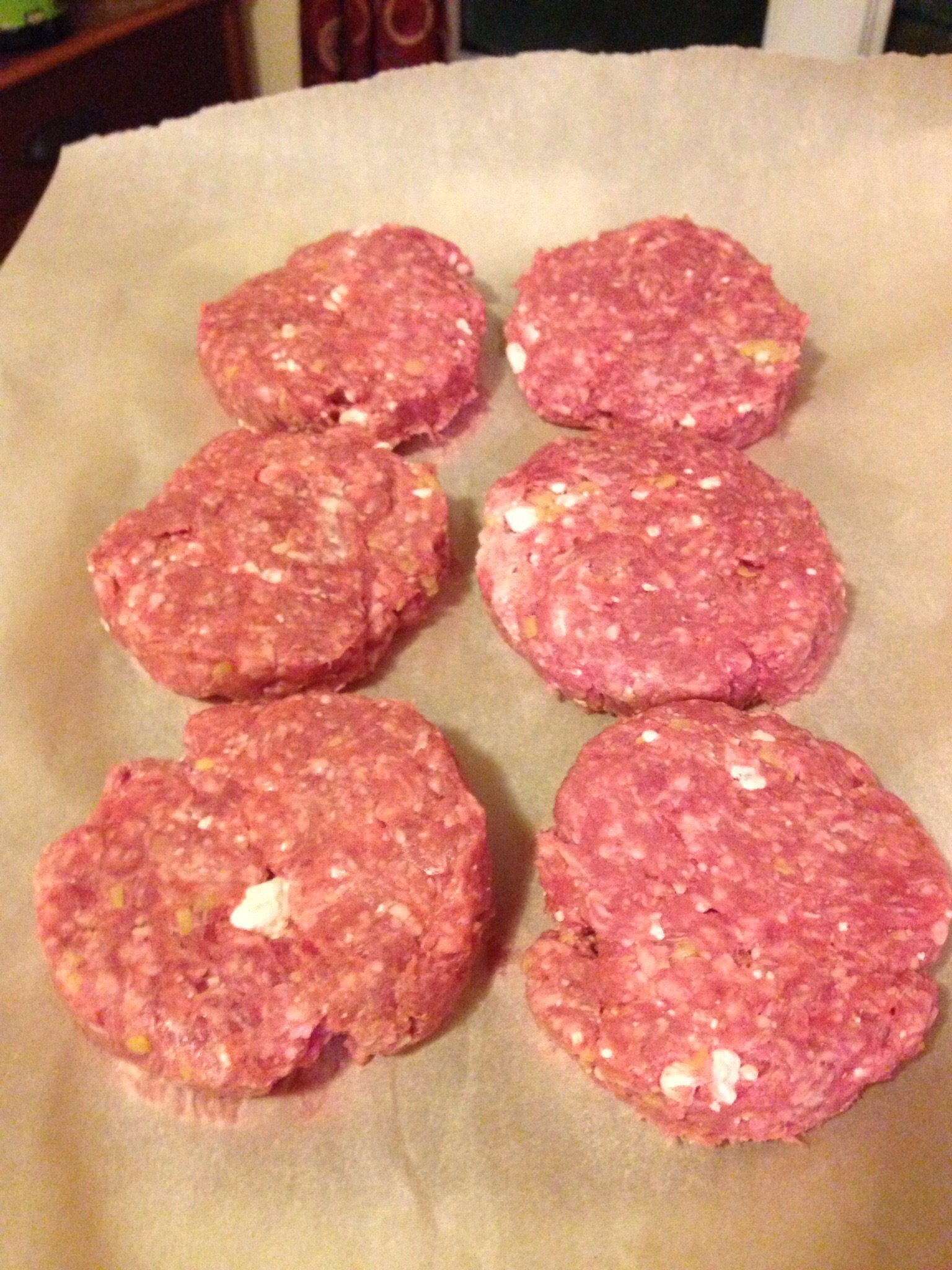 - lamb burger patties – after the chicken went in the oven, I mixed up 3lbs of lamb with feta and garlic and froze a trayful of 12 patties for use during the week. When I cook them for supper, I will cook extras for lunch the next day.